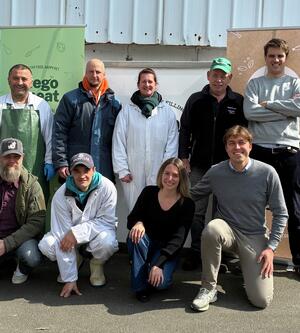 Nancy reçoit l'aide d'Arsen (‘Packaging prince’) – Michael (‘Production DJ for the meat beats’) – Jimmy (‘Recipe genius’) & Kristof (‘Washing rockstar’) pour créer les recettes, remplir le hachoir à viande, les emballer dans des boudins, empiler les cartons sur des palettes et les stocker dans nos congélateurs.